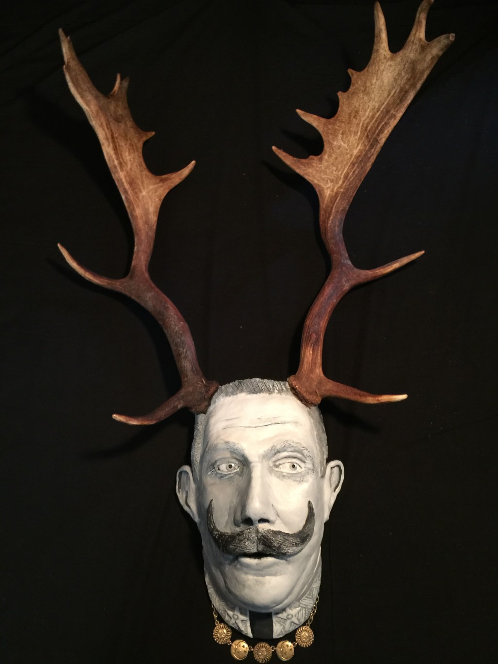 When I first saw his face my immediate thought was – I must tackle this as a mask project. Look at that moustache, those steely dispassionate eyes and puffy dissolute face. For me there was something compelling about his face and I felt a need to try and recreate that in clay. Certain aspects of “The Archdukes” lifestyle though, provided an ironic justification for wanting to see his head mounted on my wall sporting a set of Fallow Deer antlers…