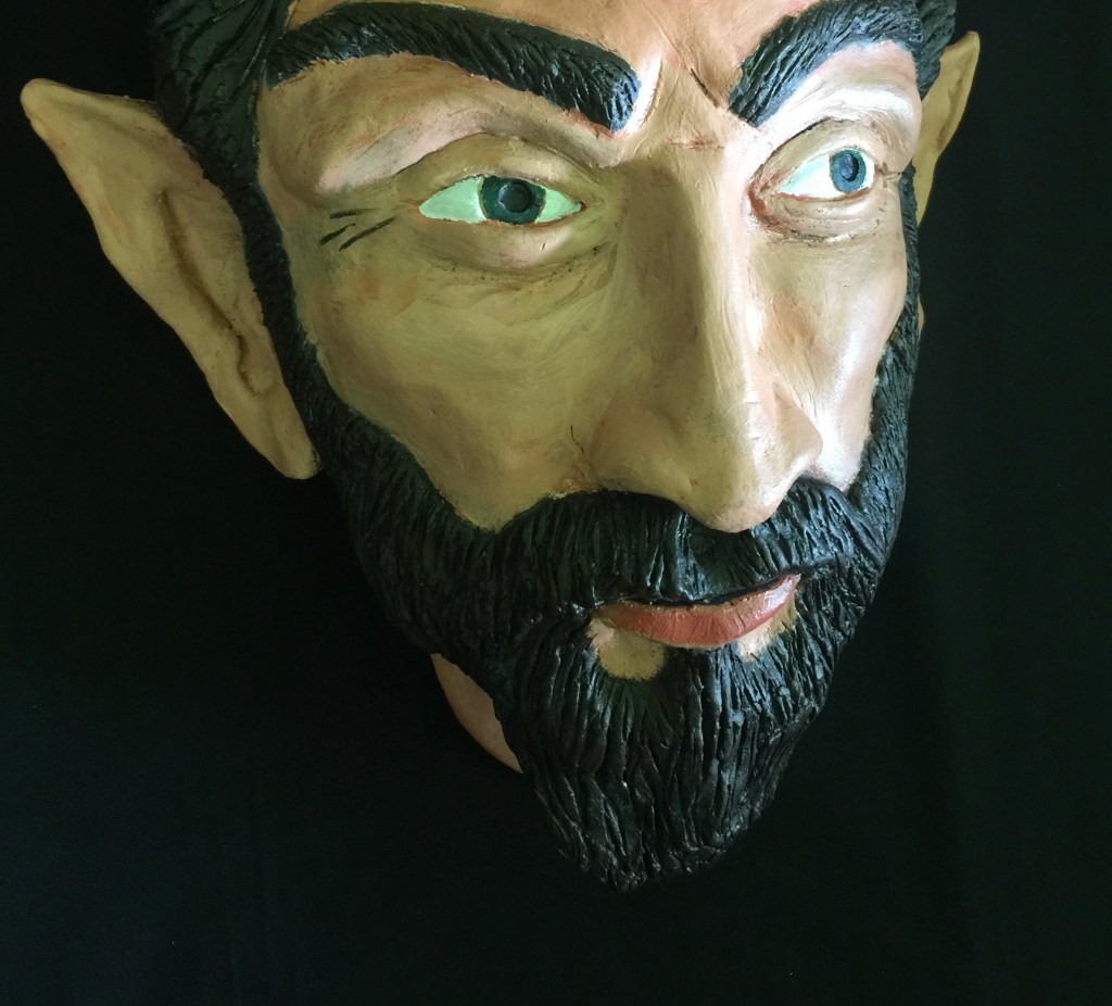 So I made the journey from my home in Kitsilano to my Studio on Mayne to dust off my mask-making abilities and put something together. Of course, at this time, we are all painfully aware of the ongoing pandemic and this made me think of the Greek root words of Pandemic – which are Pan (meaning all) and Demos (meaning people)…and so, as minds do (mine at least) I thought of making a depiction of Pan, “god of the wild, shepherds and flocks, nature of mountain wilds, rustic music and impromptus, and companion of the nymphs.” (from Wikipedia)…perhaps if we paid more respect to Pan (nature) we’d have fewer Pandemics.