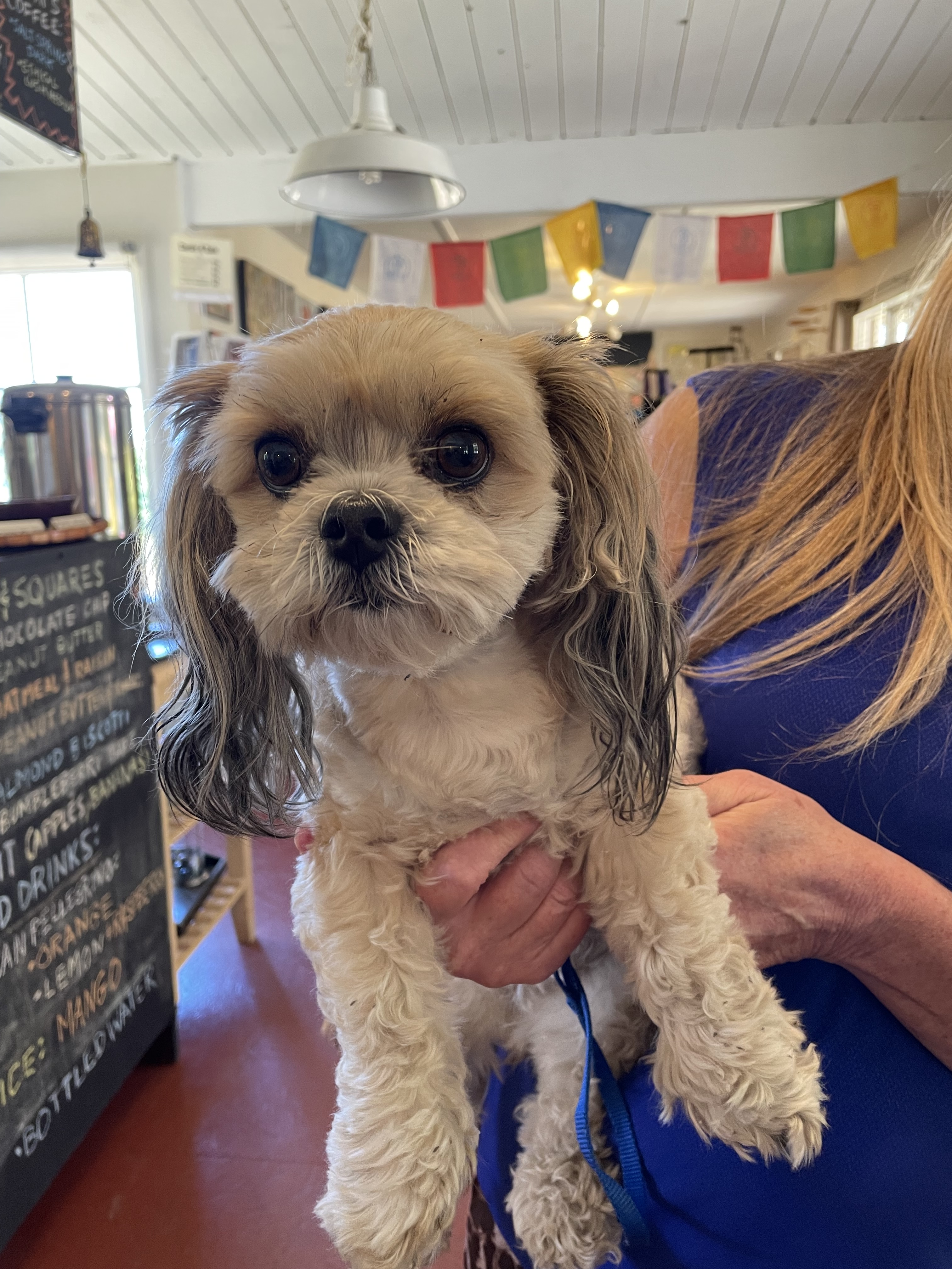 I find that the arrival of animals of all varieties – mammal, amphibian, avian, and even insect – brings an element of joy and good energy into my life. Shavasana Gallery & Café is welcoming to all such creatures(well, with the exception of the last 3 major infestations of carpenter ants, caterpillars, and wasps!), and I’m especially delighted when friends – or strangers- show up with their dogs or cats…or frogs! (I always keep a good supply of treats for any of our furry friends) Cathy and I adopted a very small squirrel – Alvina – in Kitsilano, and fed her until she headed off, presumably to start her own family🙏