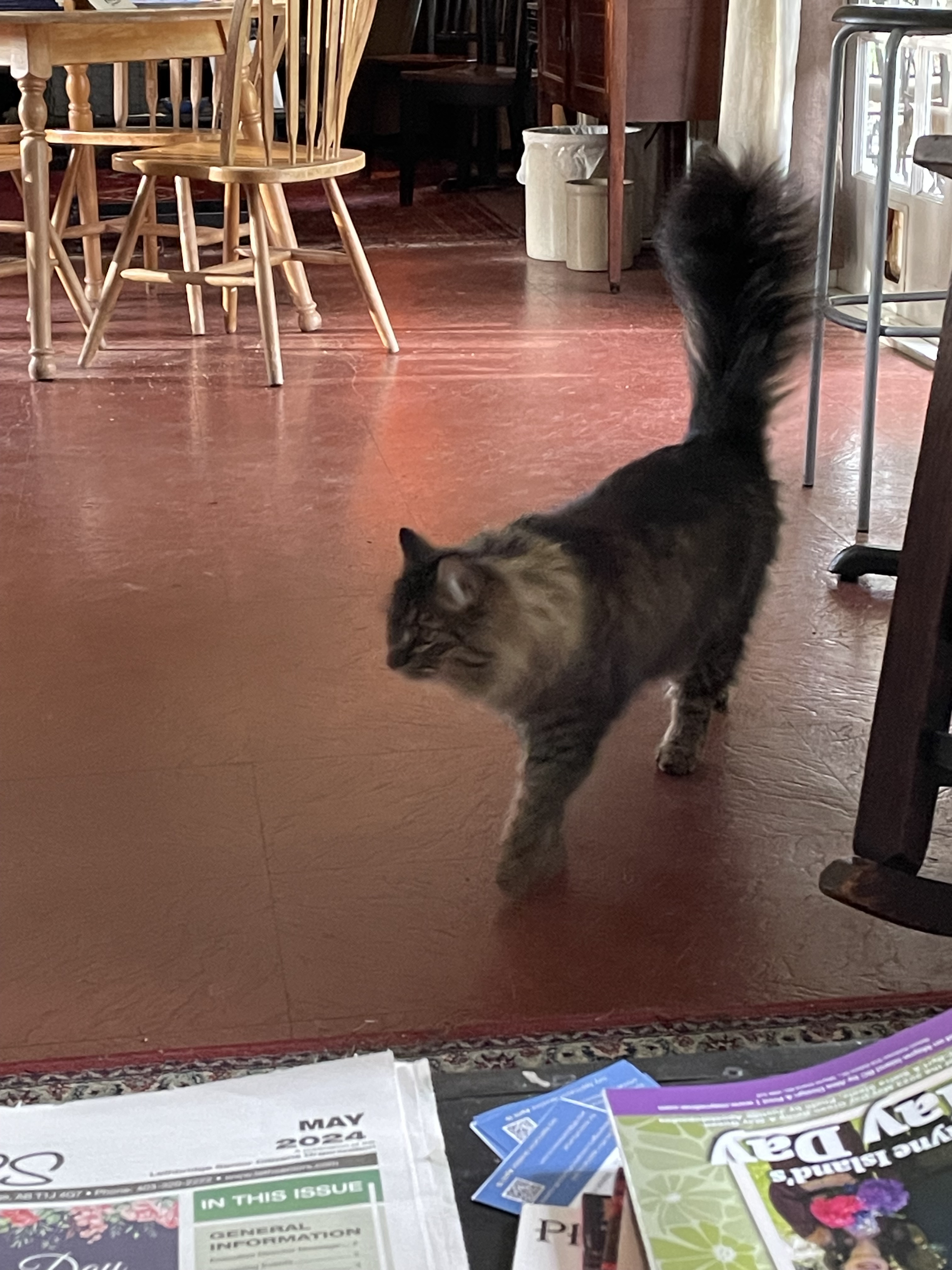 Flash! One thousand and one, one thousand and two…rumble, Rumble, BOOM! “It’s getting pretty close,” said Mike, as the lightning bolts and subsequent thunderclaps got ever closer together. Just then, we heard movement within the Café, as an elderly woman with snow white hair, a hearing aid, and cat-eye glasses, came out of an adjoining room and shuffled towards us, carrying a menu.