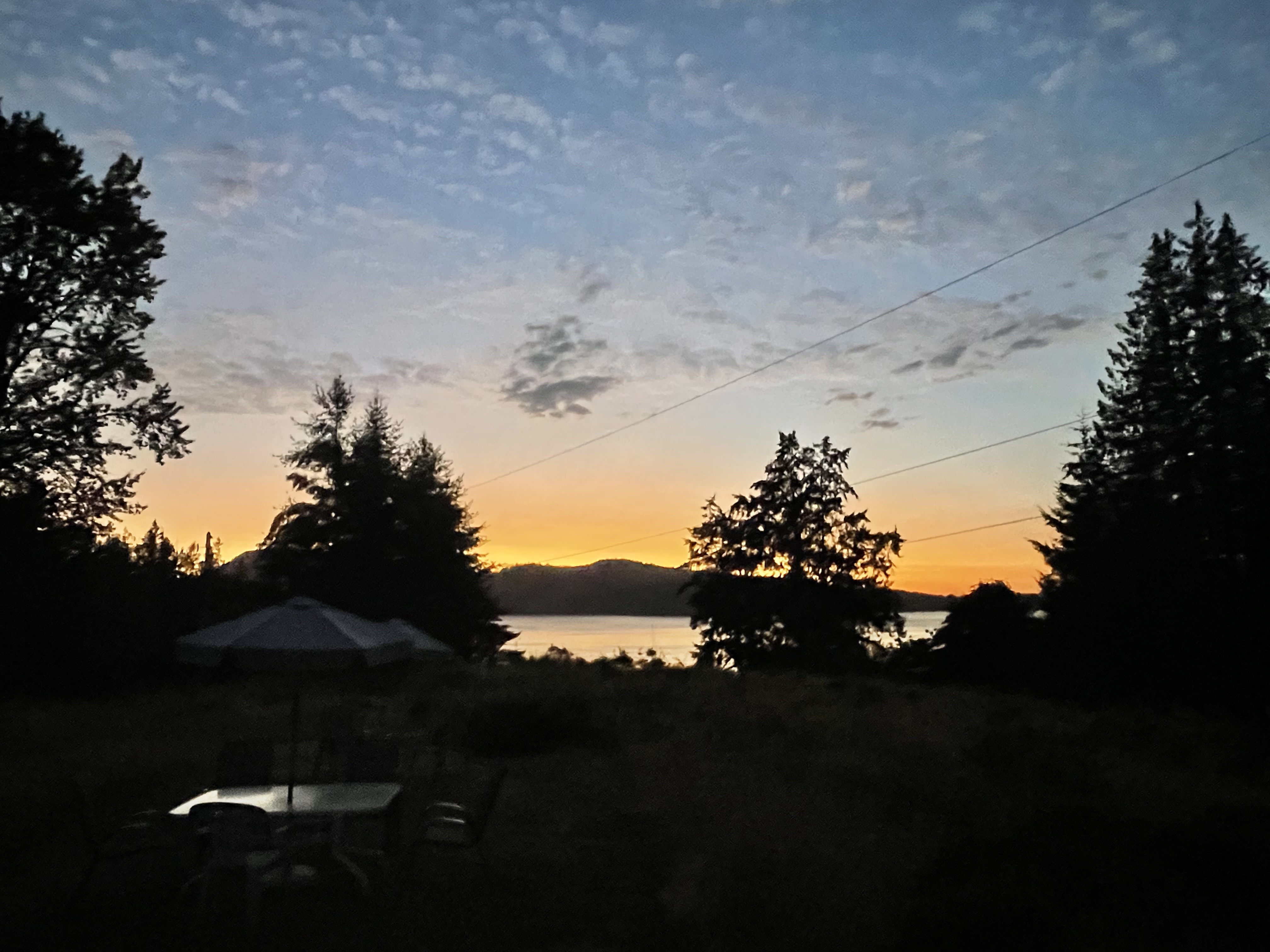 Our new circadian rhythms kicked in almost immediately, and on this, our first morning on the road, we got up at 6:30am due to: acute hunger, the bright, morning light streaming in through the uncurtained windows, and the discomfort of lying on a plywood floor in a thin sleeping bag without benefit of a foamy – covered in mosquito bites. No more late-night TV, queen-sized beds in climate-controlled surroundings, and fridges and cupboards brimming with readily accessible food. All habits and comforts are gone, and we are faced with the daily task of solving basic human needs and desires in new and creative ways. We loved it.
