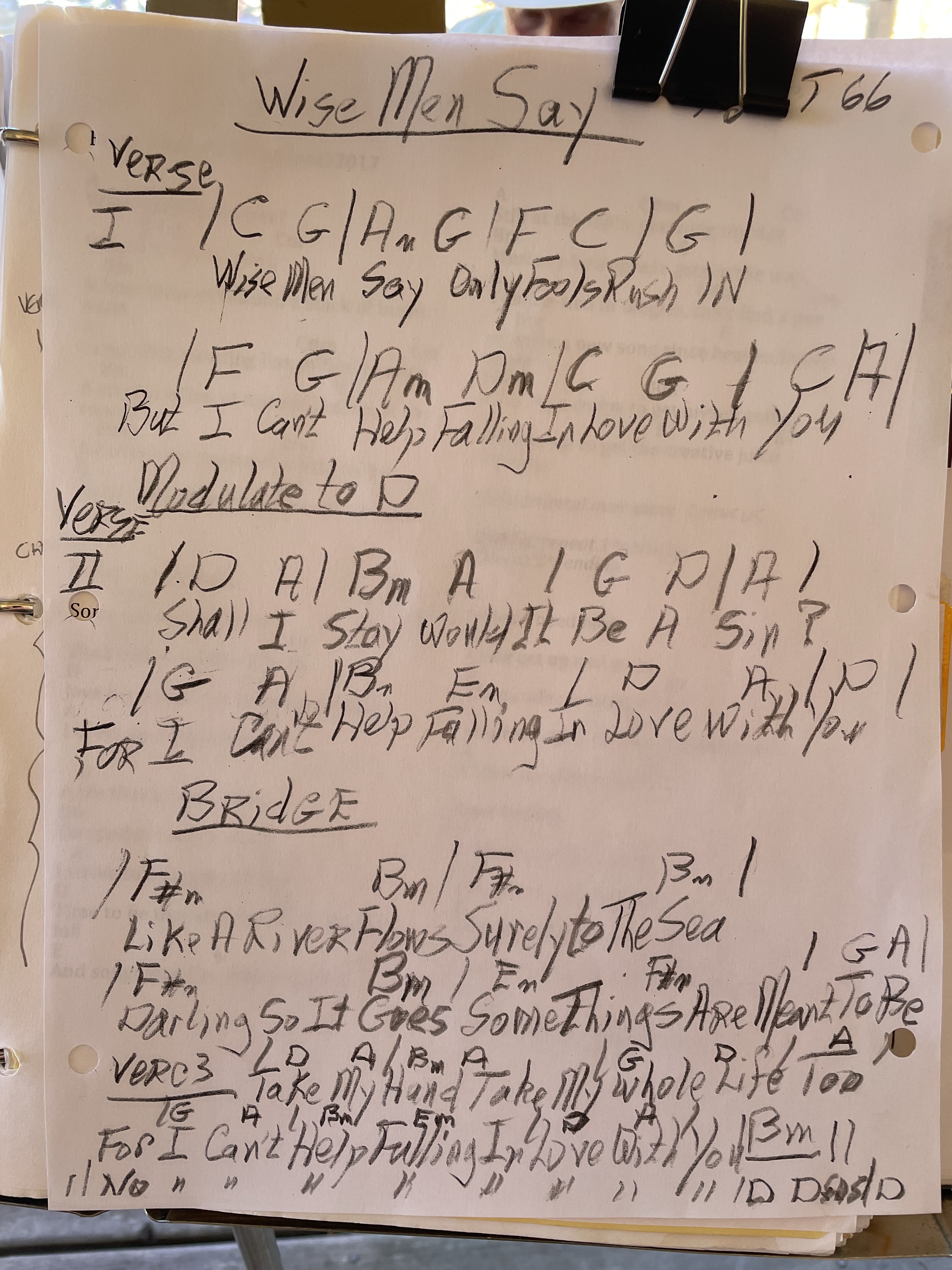 We are joined by Barry on saxophone, and a fellow on drums (whose name I have forgotten). Despite playing this song for over 40 years – I still need a song sheet in front of me 😆