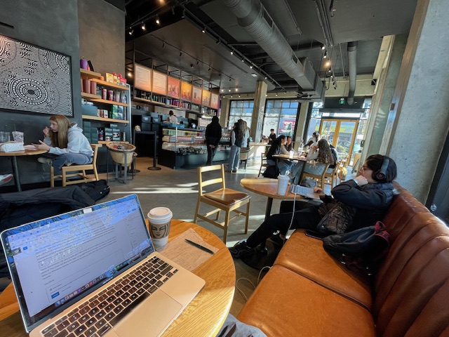 This is where I am currently sitting – the Starbucks at the corner of Balaclava & Broadway in Kitsilano – “my office”…I love the light, the good energy & the coffee