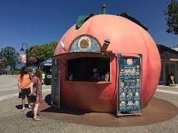 Following the curve of the beach, and the curves of the bikini-clad girls, we rounded a corner, and there it was – The Peach – in all of its large, ball-shaped, faded, peach-coloured beauty. “Ha ha! It’s an ice cream stand!” said Mike, as Tim and I laughed. “Yeah,” I said, “and they make pretty good ice cream – I think I’m gonna have one.” We all bellied up to the serving window and ordered our favourite cones. “Mmm, Pralines and Cream, I love this stuff,” I said, as Mike & Tim slathered over their Chocolate and Strawberry. We decided to take a break and sat with our cones under the nearest shade tree and watched the human parade pass by.